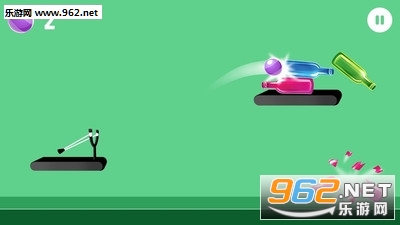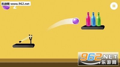 用你的弹弓发射小球,打破了对面那些瓶子