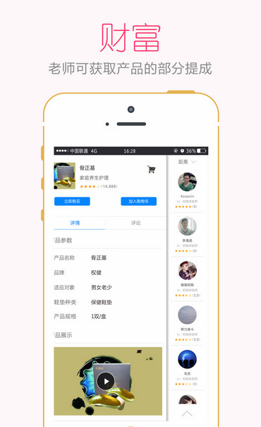 3、可以在APP上直接点击购买权健所有产品,并可以发表使用产品的感受,让未使用产品的朋友能够有更多的参考。并能随时随地与分布者进行交流,当有新的消费者与您交流而下单时,您可以获得相应的佣金。