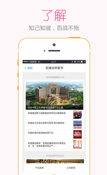 1、通过自然疗法APP,可以了解权健的全面资讯,包括产品图文详情,公司最新政策,和权健人分享的成功经验案例,当您向新朋友介绍权健时,再也不用带一大堆资料和产品,只要下载权健自然疗法APP,就可以轻松搞定。