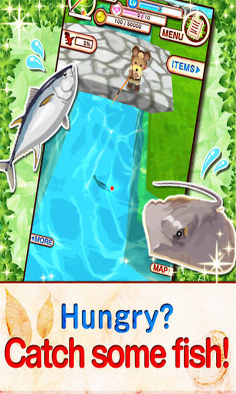 3D的冒险场景,通过点击控制小熊完成冒险,很多任务挑战,钓鱼是游戏中比较有特色的玩法之一!