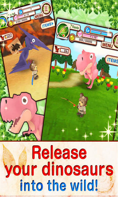 在游戏中,玩家需要控制库玛小熊探索这个神秘的岛屿。如果小熊饿了,你需要去河边钓鱼给小熊吃。游戏中有18种恐龙,69种鱼类,昆虫24种,非常值得探险。