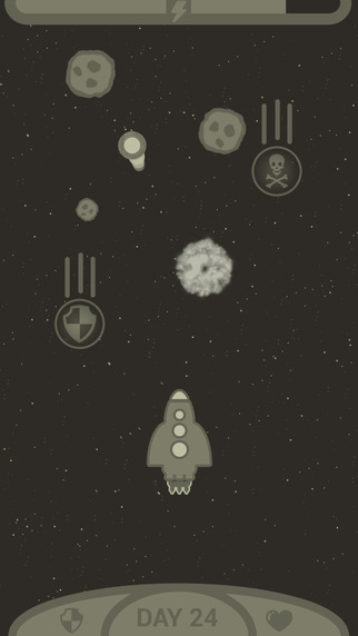 游戏以黑白风格为玩家们带来了逼真的太空画面,控制阿波罗战机收集陨石完成飞行冒险挑战,当然有些不赋有能量的陨石要记得躲避。