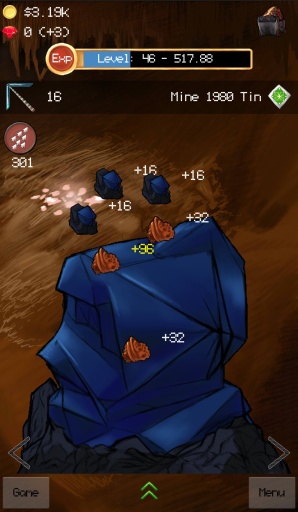 游戏开始会有些无趣,就是一块大矿山,你需要不停地挖掘,可以增长经验,你只有坚持下去才会发现更多的宝藏,所以说坚持才是胜利,小编认为开发者应该在第一关重现设计一番,不然很多人会放弃的。