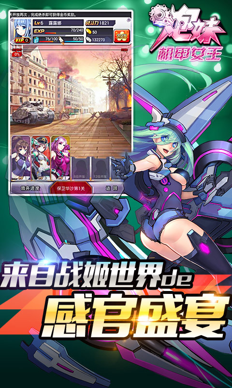 6星卡牌重磅出击:爆甲姐妹带你穿越二战,重温那些经典战役,与妹子们共同开启新的篇章。艾露娜,古德里安,巴顿三大6星战姬,逐一登场,维护世界的正义与和平,祝你血战到底!