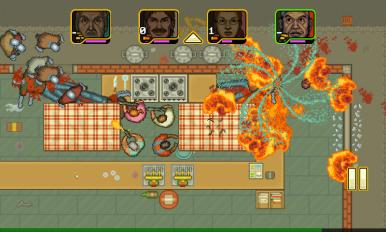 剧情非常有趣的防守攻击类游戏,游戏场景为酒吧的平面俯视视图,沙发家具等道具非常多,玩家可以纵观全局,全力部署,将道具设置为隐藏护盾,抗下一波僵尸的攻击,然后再是武器火力的发威,让僵尸死无葬身之地!略血腥,但是像素画风也不太能感受到血腥的氛围。