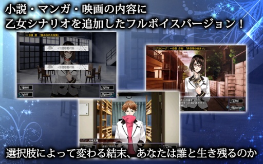《人狼游戏 for Girls》是一款恋爱养成类游戏,本作采用的游戏背景是由小说家川上亮所创作,在日本已被电影化、漫画化、TV化、手游化的人气小说《人狼游戏》。游戏的序章故事将会与小说电影相同,但是接下来故事的发展就要根据玩家自己的选择而产生不同。