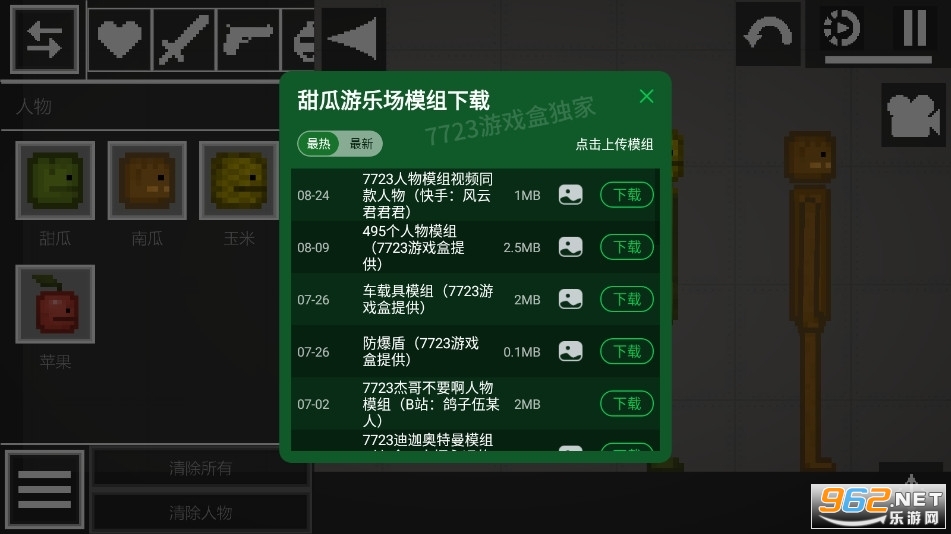《甜瓜游乐场7233自带模组15.0中文版》采用真实的物理引擎,玩家可以发挥聪明才智制作各种机械,帮助完成任务要求。游戏模式丰富,玩家可以随意释放自己的压力,在这里肆无忌惮地挑战各种丰富的游戏玩法。虽然是像素风格,但整个游戏画风非常真实,体验感极佳。如果你喜欢这种解压小游戏,甜瓜游乐场手游值得一试。