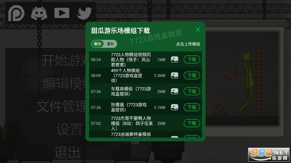 甜瓜游乐场手游是一款趣味性十足的解压小游戏,诸多游戏玩法可以体验,多元化的游戏模式,多种道具可以选择,让玩家可以轻松无忧的畅玩,还可以自行添加各种mod,让游戏变成你喜欢的样子,给玩家带来最优质的游戏体验,如果你也喜欢,不如来试试吧!