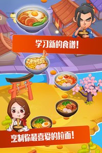 《拉面大厨(Happy Ramen Master Chef)》是一款拉面店经营类游戏。在游戏中,你可以经营多家拉面店,学习各种传统和创新的拉面菜式,满足顾客不同的需求!赚取丰厚的盈利,购买更多的道具升级你的厨房,挑战更多的关卡!赶紧开张你的拉面店,做个精通各种拉面菜式的明星大厨吧!