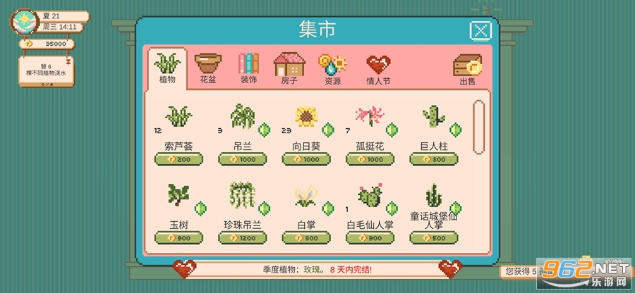 趣味的像素养成游戏,玩家可以解锁各种不同的植物来进行种植,可以看着这些植物发芽成长开花,还可以解锁各种家具装饰来装扮自己的家,游戏已修改,可以轻松体验。