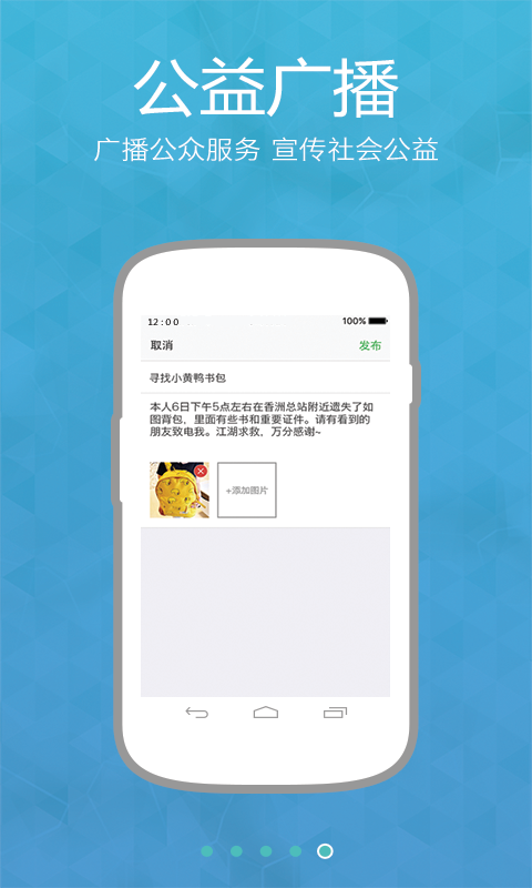 3. 公益广播是社会公益事业的组成部分,如失物招领、寻人寻物、天气预警等。