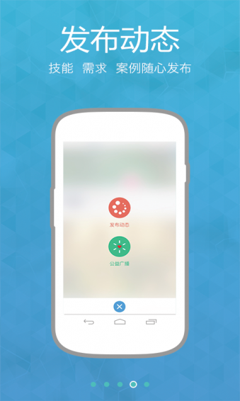 4. 发布动态。动态是您专业技能或是服务范围的一种更详细的补充;动态也可以分享您的成功案例或是服务需求,让附近其它的用户更加了解您,建立更多的信任感,提高您在附近人群中的知名度,以便获得更多的工作和商业的机会。