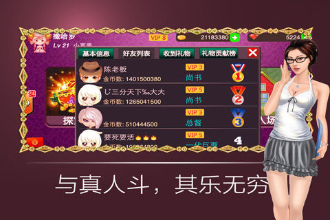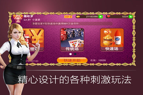 欢乐炸翻天是一款多人在线扑克对战游戏平台,游戏中集合众多休闲扑克游戏,玩家可以随时随地打开手机开撸,福利多多,红包多多,美女也多多,不同的积分场让你找到自己的战场,各种比赛带你走向胜者之巅。