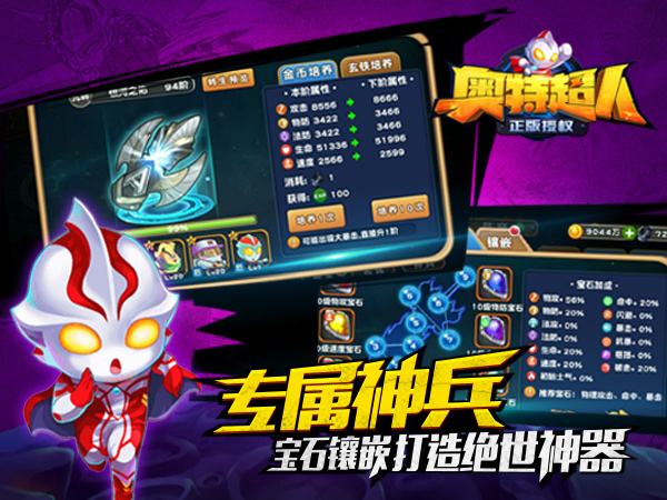 《奥特超人》是一款由奥特超人正版授权改编的策略卡牌战斗RPG手游,咸蛋超人奥特曼是陪伴许多人一整个童年的小伙伴,与之相关的手办动漫动画片电影游戏多不胜数,本作让你回味热血的童年!