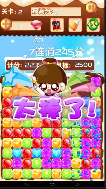很简单普通的消除小游戏,采用精美卡通画风,色彩亮丽,特效梦幻,萌妹加盟,让游戏更添可爱。应该是女性玩家比较青睐的消除游戏类型,杀时间必备佳作。