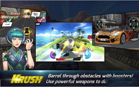 《速度冲撞(Rush N Krush)》是一款由Netmarble开发的战斗性赛车竞速游戏。欢迎来到速度冲撞的世界!在拥挤的交通中杀出一条血路!用加速器冲开一切挡在你面前的的障碍物!游戏中有单人模式还有挑战模式,玩家可以和全球的小伙伴们一起比赛,可以一对一,也可以同时4人一起竞争哦!
