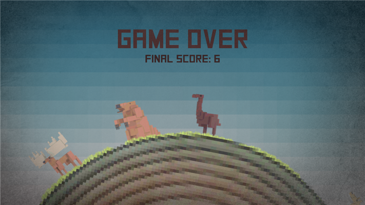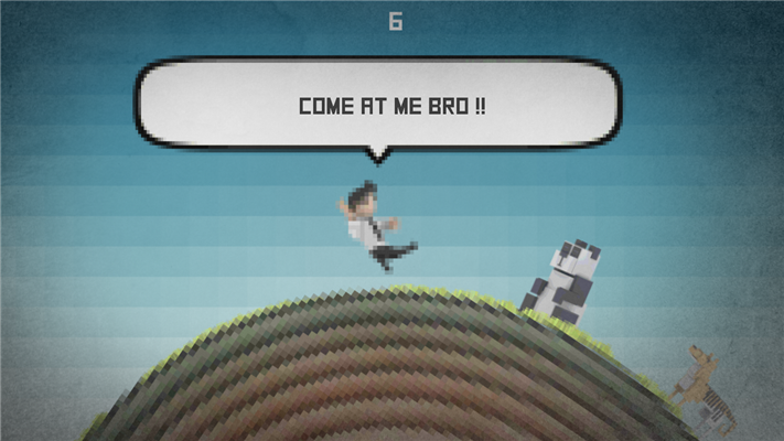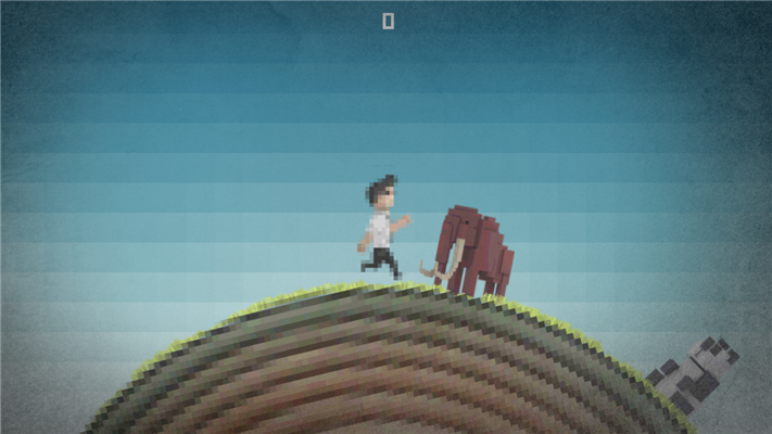 无尽的奔跑游戏,带有像素风的画面,游戏内容没有什么复杂,在转动的地球周边进行不停地跑动,遇到动物的时候对它们进行踢打,时机很重要,提前或推后都会失败,多尝试几次相信你会做得很好。