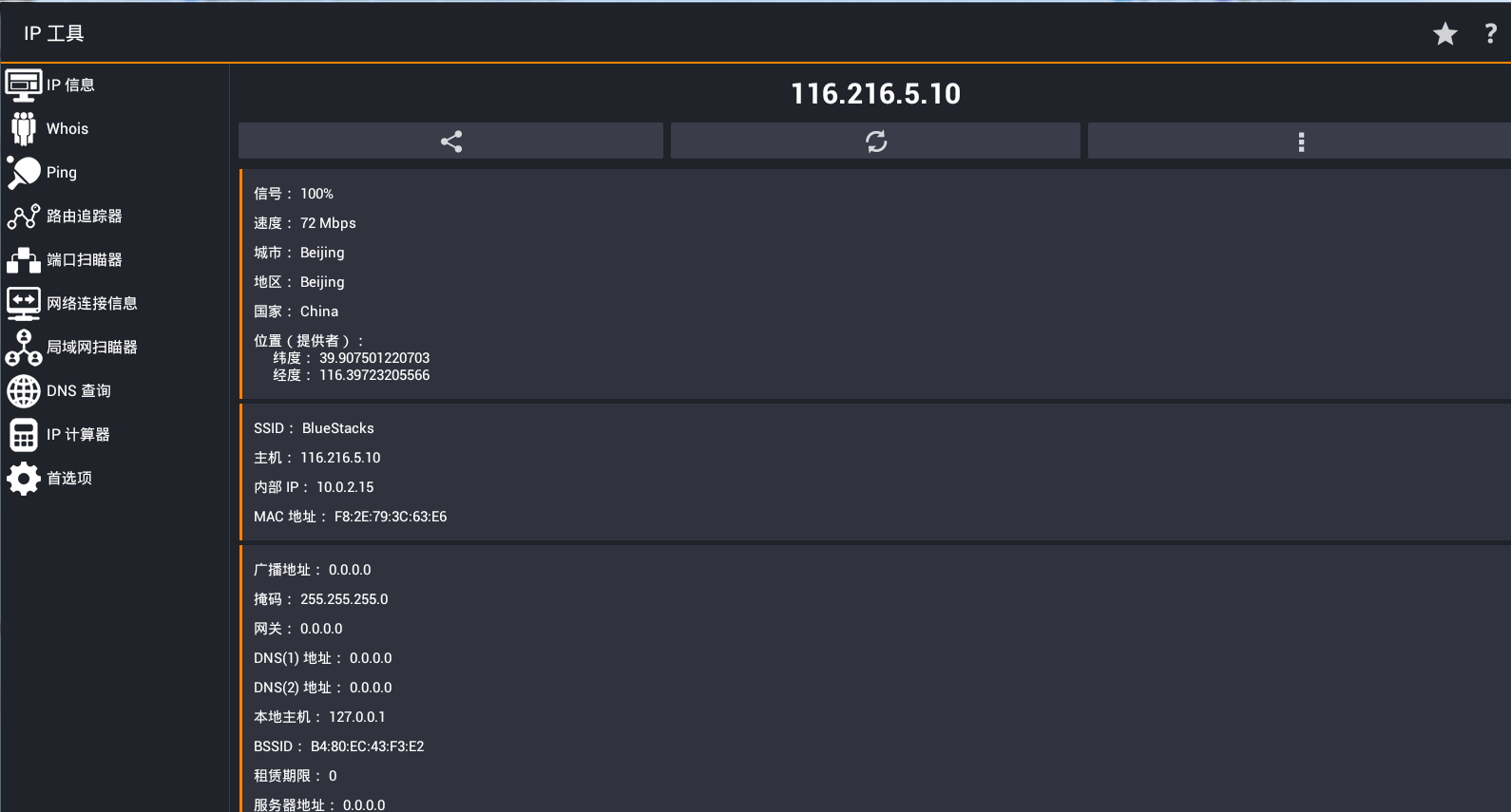 “IP工具”是由国外软件开发商开发的一款网络分析的强大和方便的应用程序。这个程序包括最广泛UTILITES的,你可能会发现在Windows和Linux。一切得到的IP地址或网站的信息,现在在您的设备是必要的。简单的用户界面,可以让你知道目前的IP地址,并获取信息任何的网络地址,和特殊服务验证的告诉你,没有互联网连接。