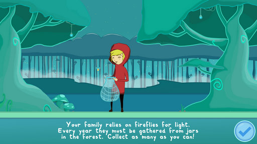 游戏画面唯美,使用捞子将萤火虫抓起来放入瓶中,看到萤火虫点击即可完成抓捕!