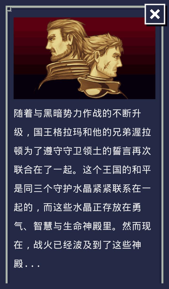 古老帝国反击是一款复古画风RPG+塔防多元素手游,游戏中玩家将来到一个庞大的幻想世界,在这里你将与人类的国王一起抵抗黑暗生物的入侵,结合育成与塔防的玩法加上丰富的剧情,喜欢怀旧RPG的玩家千万不要错过哦。