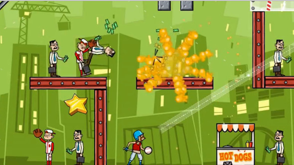 游戏的画面给人一种愤怒的小鸟的即视感,玩法也类似,只不过把小鸟换成了棒球。在游戏中你可以尽情的破坏,尽情的发泄。