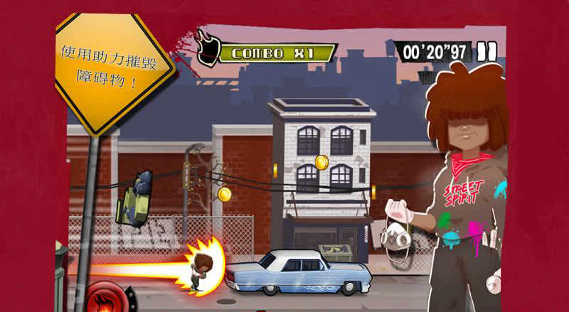 游戏拥有多人竞技模式,你可以与小伙伴们一起展开跑酷冒险,左下角有三个类似“怒气值”的东东,一旦发动,立刻出现暴走状态,前面就算有汽车拦路,也能一脚踢开!非常刺激的跑酷体验,节奏快,手感也非常不错。