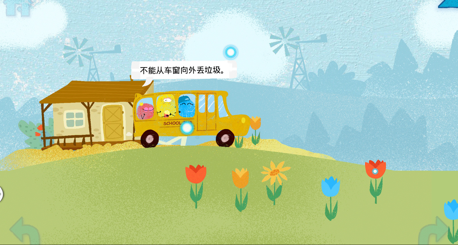 《颜色神奇点》是一款趣味小游戏,游戏中有三种不同颜色的小朋友,他们将搭上汽车去旅行,路途中会有这各种有趣的事情发生,还会学到一些生活小常识。游戏画面简洁,各种浅色的色彩看着比较舒适!