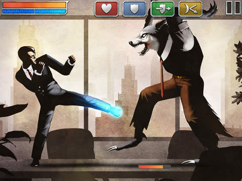 游戏有着疏忽意料的优秀打击感,拳拳到肉的质感与流畅的动作将带给玩家非常棒的格斗体验,游戏有20个关卡,玩家要结合不同的技法去打败狼人,游戏中还含有RPG的元素,穿着西装不断跳跃,然后痛扁同样穿着西装的狼人,听起来有一种怪诞的刺激和喜感。