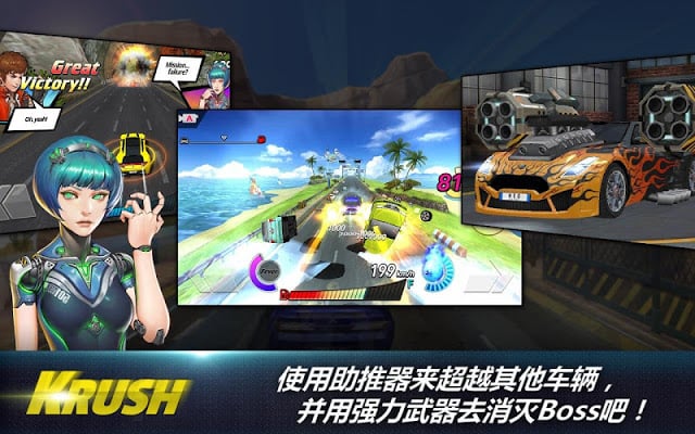在拥堵的道路上可以超车以及使用个汇总助推器来超越其他车辆,当然游戏中你要做的也是超越其他车辆,并且把所有障碍物都撞飞,当然实际游戏中也会有多种车辆,道具以及赛车手可以选择,如何打造属于你的完美组合是你需要思考的问题,实际游戏中每周排都会有名奖励和Boss胜利奖励,这也是你解锁赛车和赛车手以及各种道具的最佳选择。