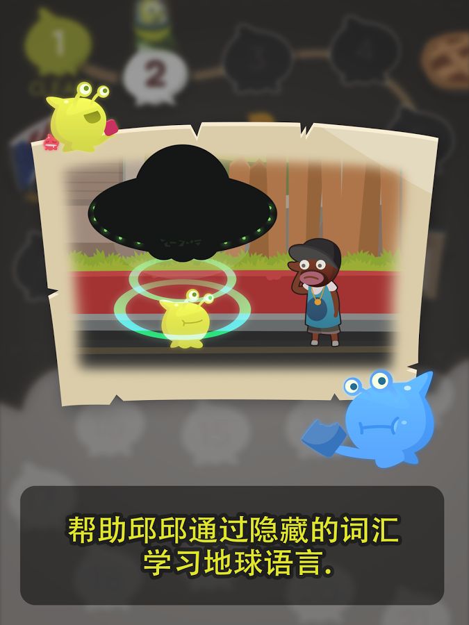 游戏故事是""外星人 &39;邱邱"" 对地球人好像要说什么,但是语言不通~""""帮助邱邱通过隐藏的词汇学习地球语言.""让我们聆听一下邱邱来地球的理由,为什么来到地球了呢?""