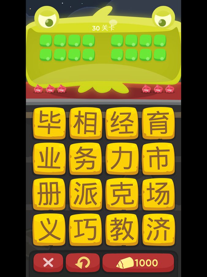 本作游戏特色丰富是 可以长期玩游戏~! 一共有400多个的关卡!消除类游戏到了高级关卡是不是很难玩下去?通过等级优化,在高级关卡也可以轻松的玩游戏!刺激脑细胞的消除类玩法! 越来越丰富的词汇能力!没有网络的时候也可以玩游戏! 在飞机上也可以玩哦!这一切全是免费!