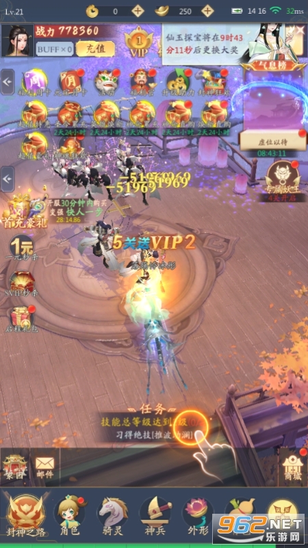 2、仙盟对战热血厮杀,各种战术运用特效满屏,挑战BOSS获取各种奖励;