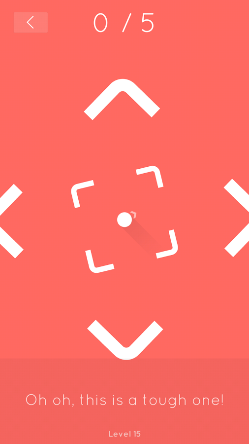 《只要5个》是一款画面及其简洁的逃脱类手游,游戏背景选取为单一的纯浅红色,给你舒适的感觉。游戏规则简单,就是控制一个小球穿过各种障碍物逃离出去,越往后障碍物越多,挑战你的极限!