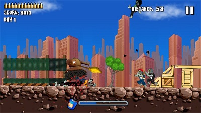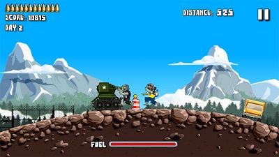 杀途中所有的僵尸前进到车库。 升级你的装甲坦克和购买新的僵尸来获得额外的硝基,燃料,硬币和能力。