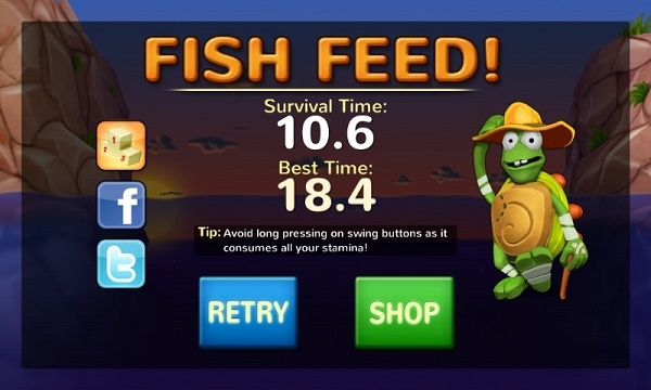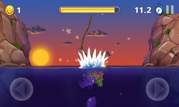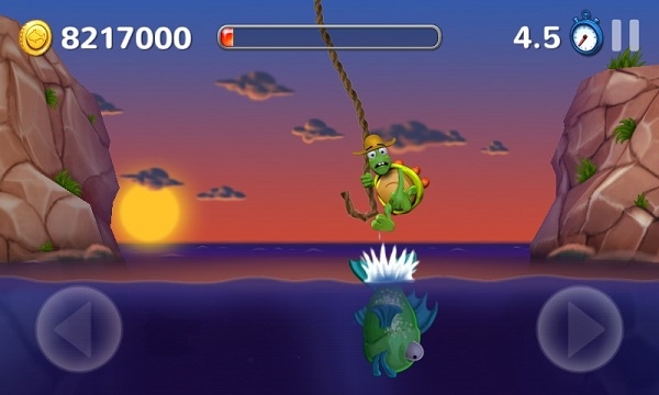 玩家通过长按屏幕,通过乌龟摇摆来进行位置的更变,但是要注意能量条,要是其归0,可怜的乌龟是很容易被吃掉了喔。虽说它只是作为一个诱饵,求生的欲望还是挺强的!
