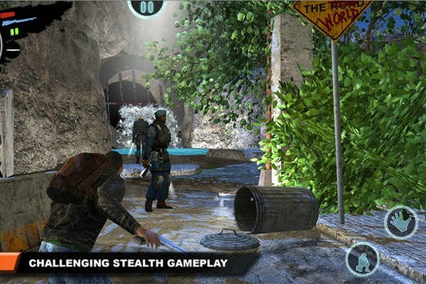 游戏开始了第一关的教程,貌似事件的最开始起点是一个破旧的监狱,男猪脚神奇般地逃了出来?然后一路上会有各种教程陪伴,操作设计相当常规,摇杆+按键配合使用,让人物移动、下蹲、或者举枪射击。整个游戏界面我已经不想吐槽什么了,字体、分辨率、再到每个物件和细节的贴图,都十分符合“免费”游戏的风格(开发商大人,我已经说的很委婉了),837 MB 的游戏体积并未体现在画面制作上,而是给我们准备了一大波的关卡。