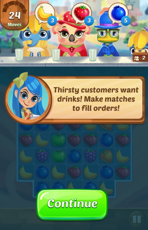 我们可爱的小公主开了一家果汁店,她需要根据顾客的需求来榨果汁,你永远猜不到满足完这个顾客的需求后,下一位顾客会需要什么,可不能一味的只懂得消除,也要照顾顾客的味口哟!