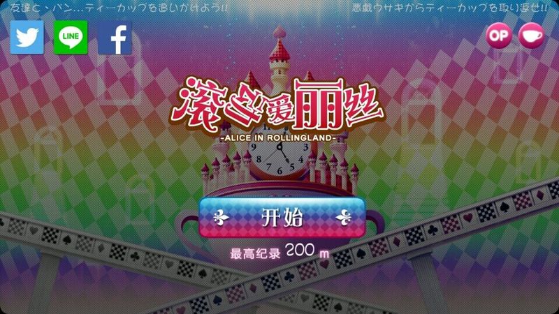 游戏主界面十分简单,并没有多余的选项,背景音乐十分调皮,画面风格也给人一种童话的感觉,右上角有观看OP和查看已收集茶杯的选项,在开始按钮的下方则是爱丽丝滚动最远距离的记录,在仙境滚啊滚的滚动游戏!看你能滚动多远吧。喜欢这款可爱的滚滚的游戏的玩家,可以下载体验哦。