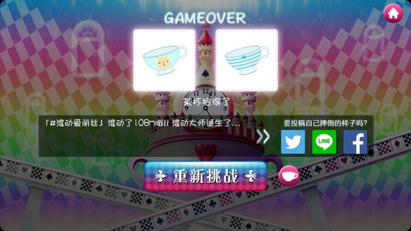 在爱丽丝滚动前进的过程中不止会出现障碍物,还会出现爱丽丝最重要的茶杯,尝试一边躲避障碍物一边收集茶杯吧!已经收集到的每个茶杯都可以查看详细信息,将所有茶杯都收集齐全是游戏的终极乐趣哦!