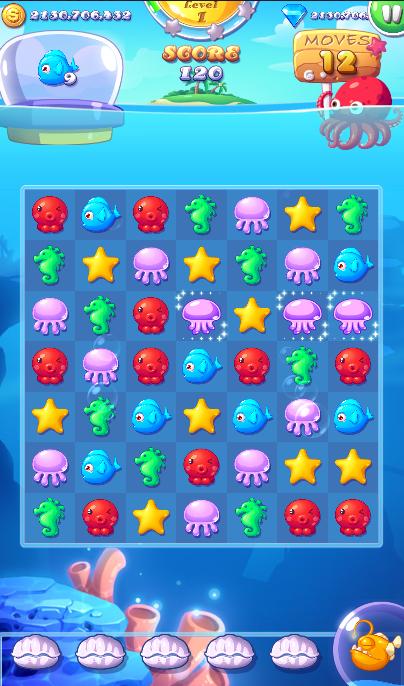 玩家们可以尽情的享受消除同种类鱼儿的快感喔,还有更刺激的关卡等你挑战呢。绚丽魔幻的海底世界到底暗藏着怎样别具一格的关卡呢,快来闯关试试吧。