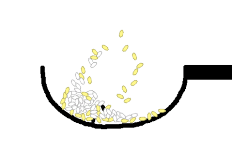 游戏界面非常简单,就只有一个简陋到不行的锅和白色的米,玩家可以左右摆动手机来翻滚米粒,注意不要抛太大力把米全都抛出去了!
