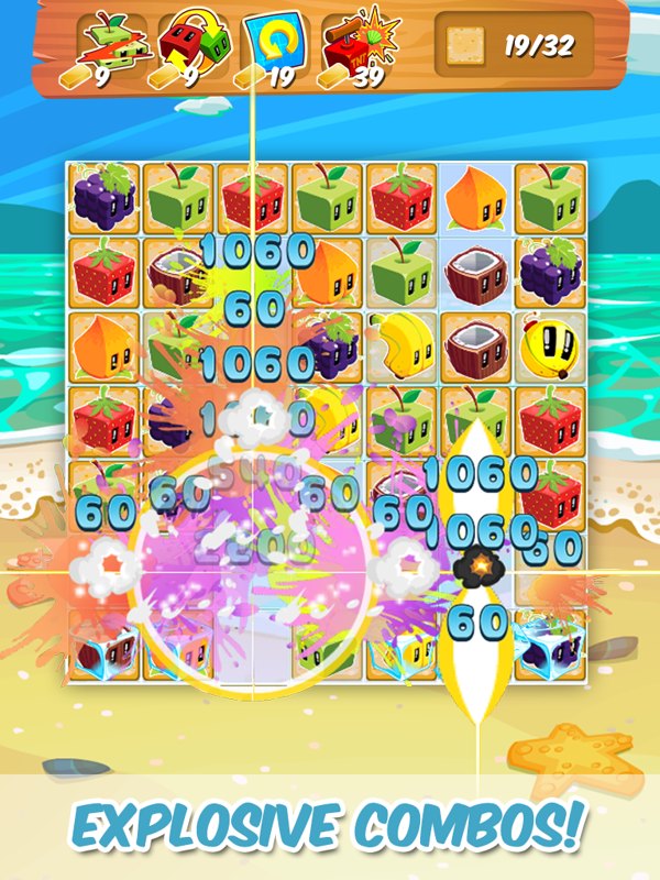 《果汁方块》是由Rovio Stars Ltd全力精心打造的一款三消手游,本作的主题是以水果为为主,划动起来非常的有快感,果汁迸溅,可爱的画风,和非常轻松的音乐,让玩家仿佛置身海滩轻松游戏,还在多种关卡等你来战!