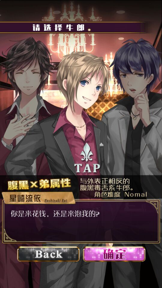 《超难追的男友:牛郎篇》这是一款非常好玩的日系乙女养成类休闲游戏,游戏里各种各样的帅哥角色等待着你的挑选,相信很多女性玩家已经等不及了吧?那就赶快来下载玩玩吧。