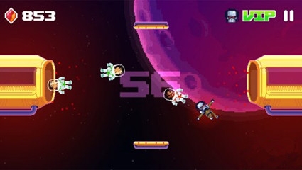 1、游戏看起来更像是弹珠游戏,上下各有一个平台,玩家就是要控制这个平台,而从一端跳出的宇航员在失重的状态下借助平台的力量到达对面的飞船中。