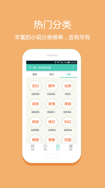 ● 玄幻奇幻、都市职业、武侠仙侠、现代言情、古代言情、架空历史等18大分类榜单随你选!