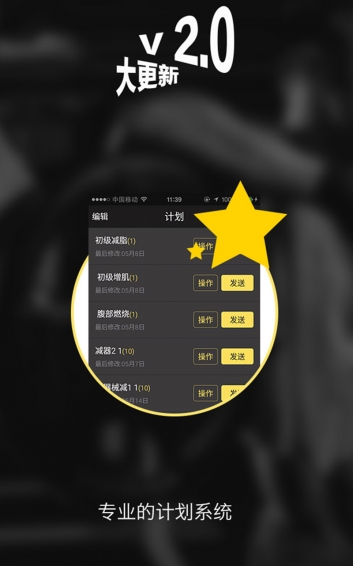 3:计划:专业的创建健身模板,丰富的动作选择,提供修改、编辑、复制等操作。