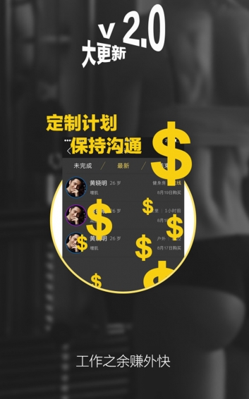 健身达人们可以用这款软件为自己赚外快哦!不过首先要自己有丰富的健身经验,才能招收学员,让学员有了成效之后,自己的劳动才会换来收益。