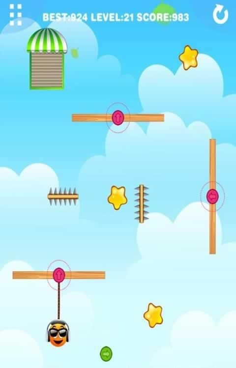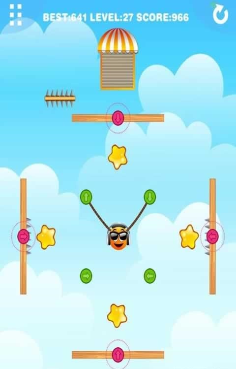 重力橙子2是一款益智类游戏,大家要帮助橙子得到所有的星星即可成功过关。在得到所有的星星之后,让橙子到指定位置会进入下一个关卡。不过游戏中要注意钉刺不要碰到它们,碰到绿色或者红色的圆钮会生成新的绳子,并且橙子会被挂住进入新的方向,而带有方向的圆钮会改变橙子的方向。