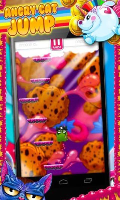 愤怒的猫是一款卡通Q萌小猫主题的竖版跳跃冒险类游戏,精美梦幻的卡通游戏场景,一脸不高兴的猫星人也是萌萌哒,猫星人还有不同的造型出现哦,让喵星人在梦幻的阶梯上一路向上吧!