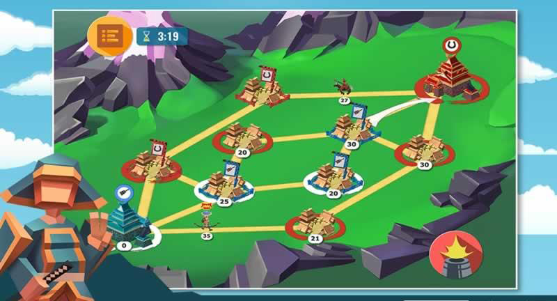 游戏采用精致而富有代表性的卡通画风,在精美的画面下玩法设定也十分丰富,你需要在即时制的战斗当中操纵好自己的部队,同时要注意自己部队的组合,不同兵种的配合使用,强大的武士将为你而战。